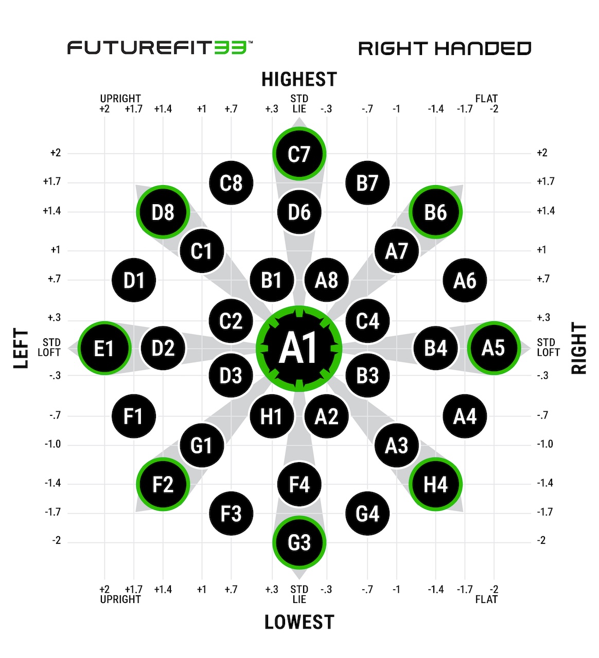 FutureFit33 gör att spelaren kan justera loft och lie oberoende i hela 33 unika positioner, vilket ger optimal bollflykt och spelupplevelse.