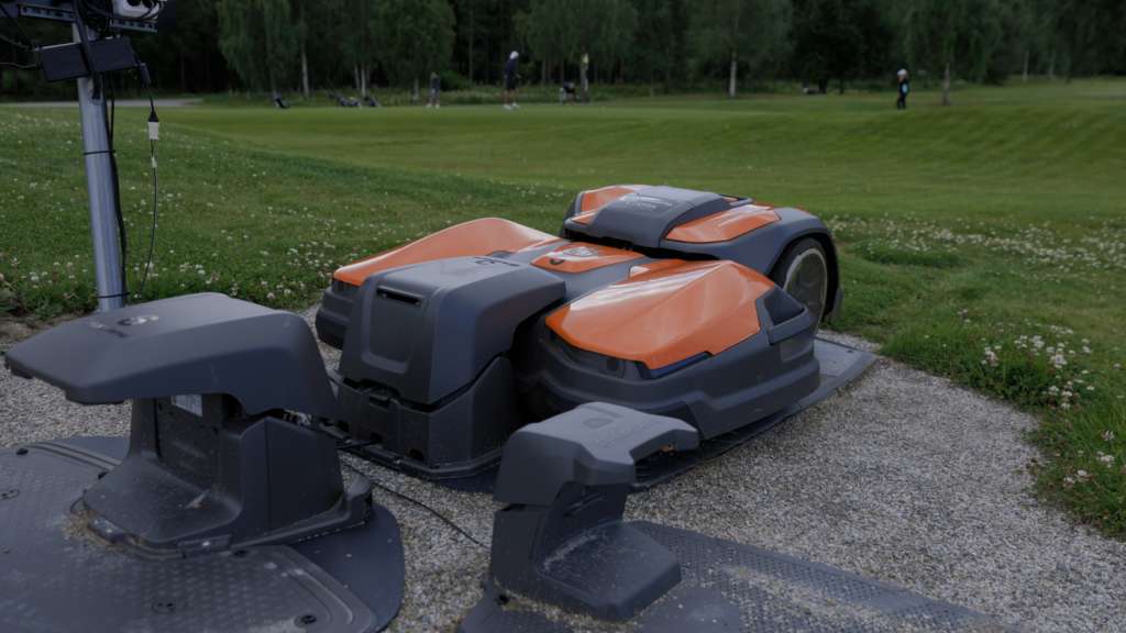 På Örebro City Golf Gustavsvik har man serviceplatser på två olika ställen dit robotklipparna från Husqvarna söker sig för att pysslas om. Och dit söker de sig också när det är dags för veckans service.